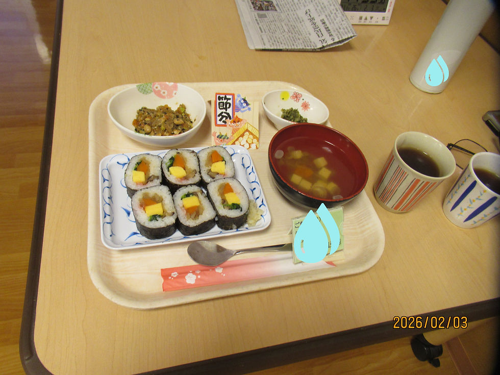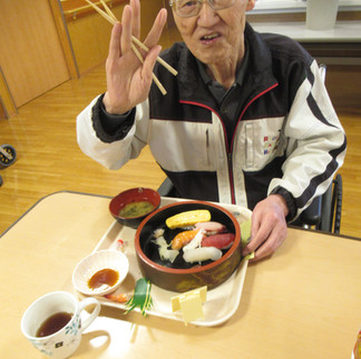 施設で提供される、海苔巻き、ちらしずし、実演の握りずし等も好評で、皆さん楽しみにされています。