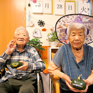去年のハロウィン行事で「かぼちゃの煮物が食べたい」といったお声をたくさん頂いたので、今年は煮物を作ってみんなで食べました。